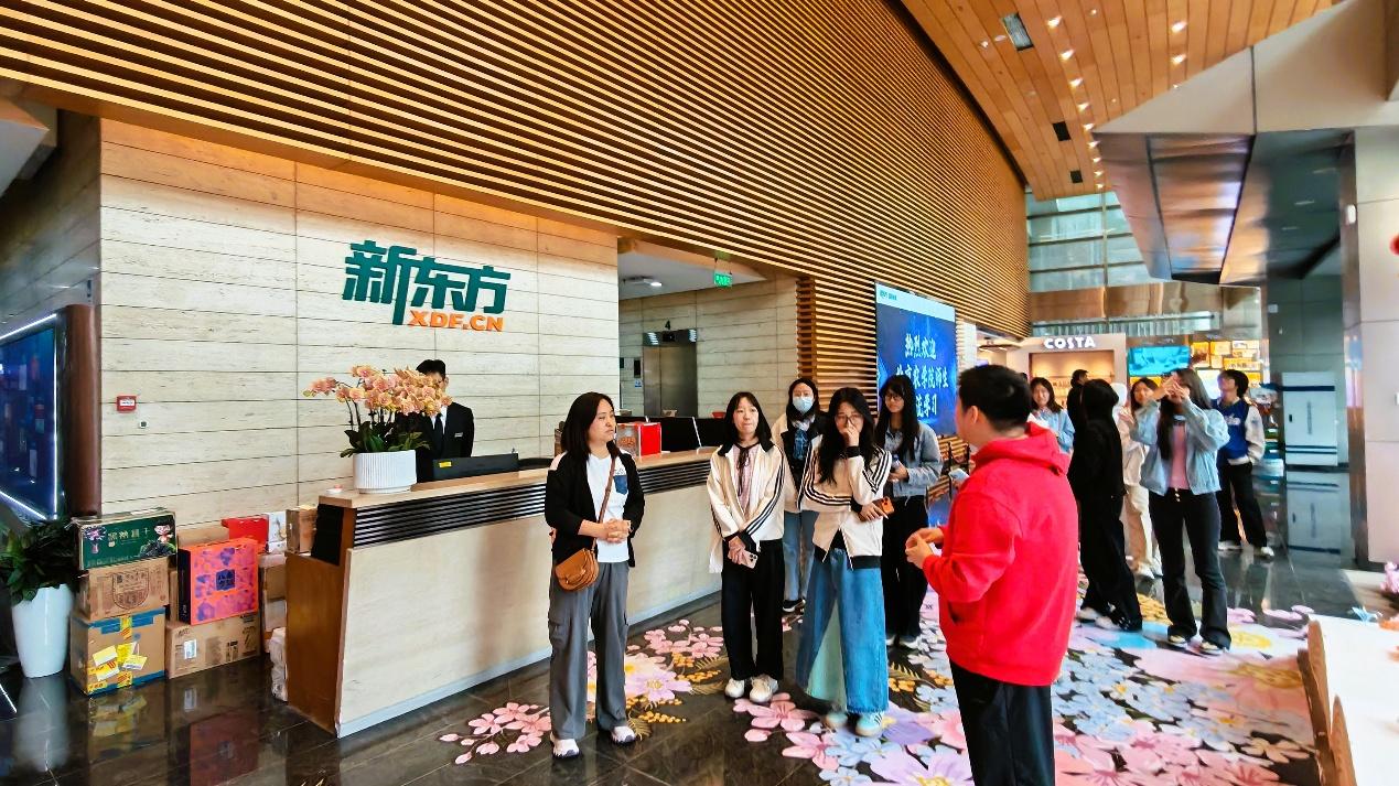 近日,国际学院国际化人才培养创新实验班师生一行赴新东方总部开展企业探访活动。在班主任杨熙老师和新东方工作人员的带领下,同学们先后参观了总部北楼办公区、大愚书店及南楼教学课堂,深入了解新东方在教育、生活服务、文旅融合等领域的最新转型布局,以及近期企业岗位设置与招聘需求。